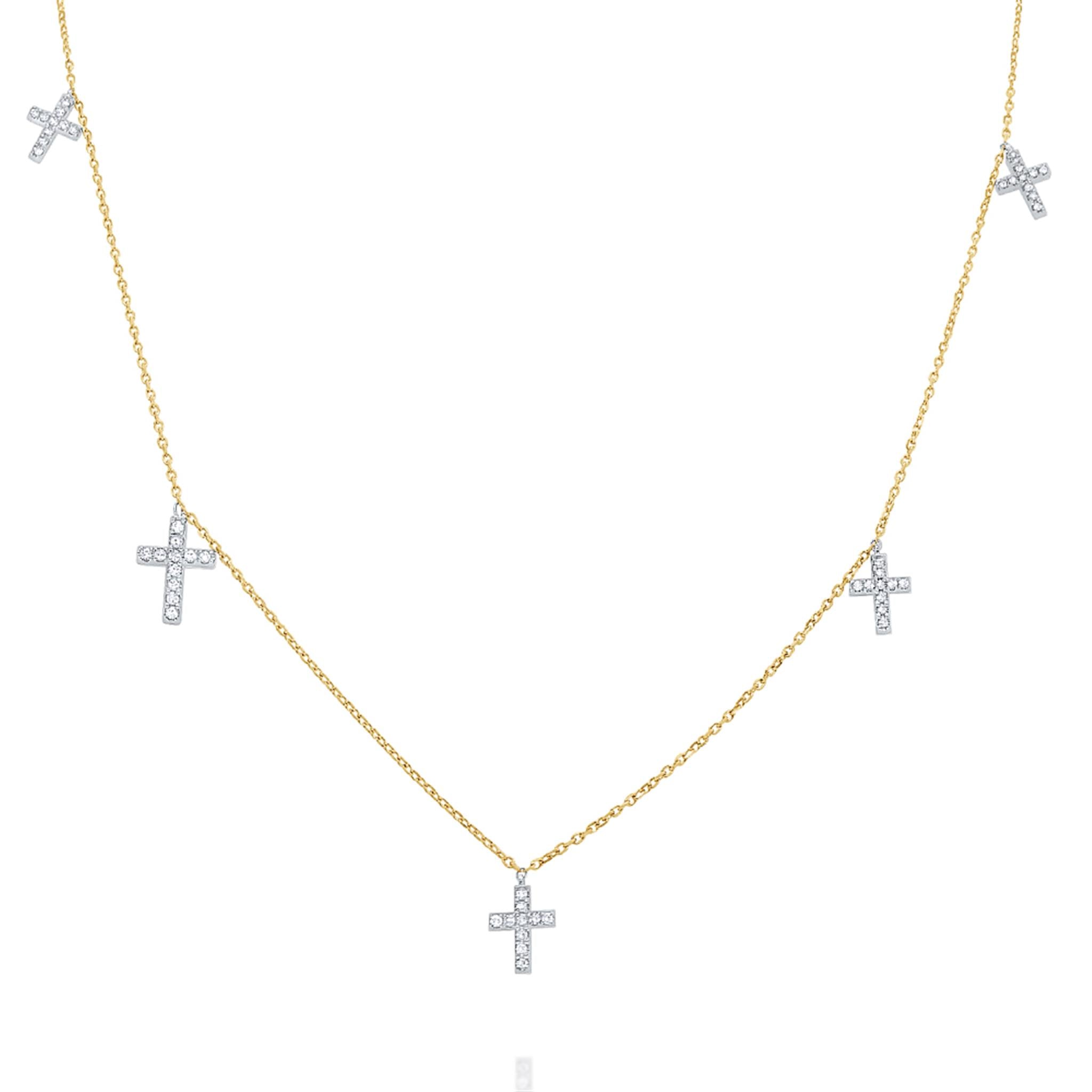 14K Yellow Gold Multi Cross Diamond Drop Necklace
