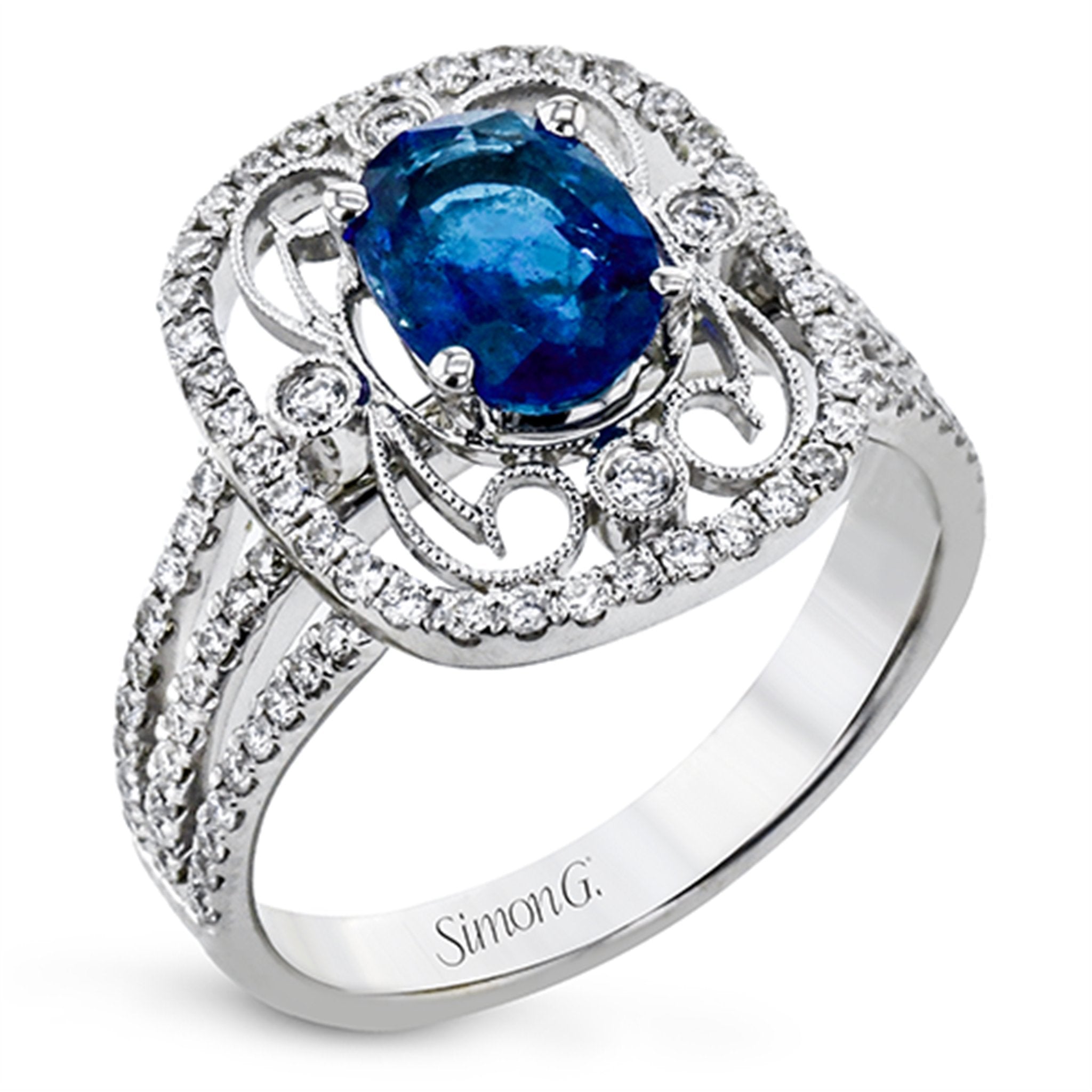 18KWG RING W OVAL BLUE SAPPHIRE CENTER 1.30CT AND 86 DIAMONDS @ .47CTTW